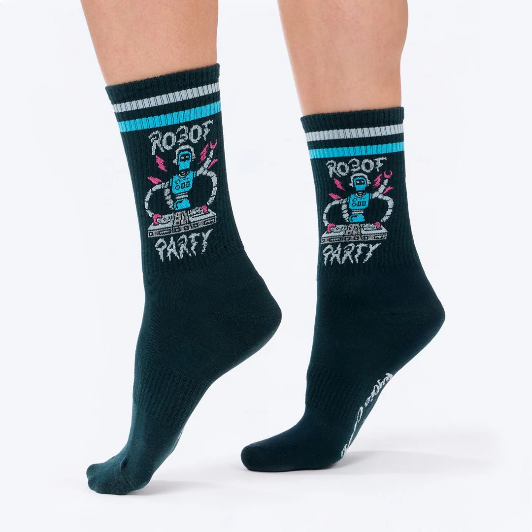 ¿Eres de los que les gusta la fiesta? Activa el Modo Fiesta con Robot Party, siente la música a tu alrededor y deja que el ritmo te invada con esta explosión de diversión y locura musical, con los calcetines Robot Party serás el rey de la noche.