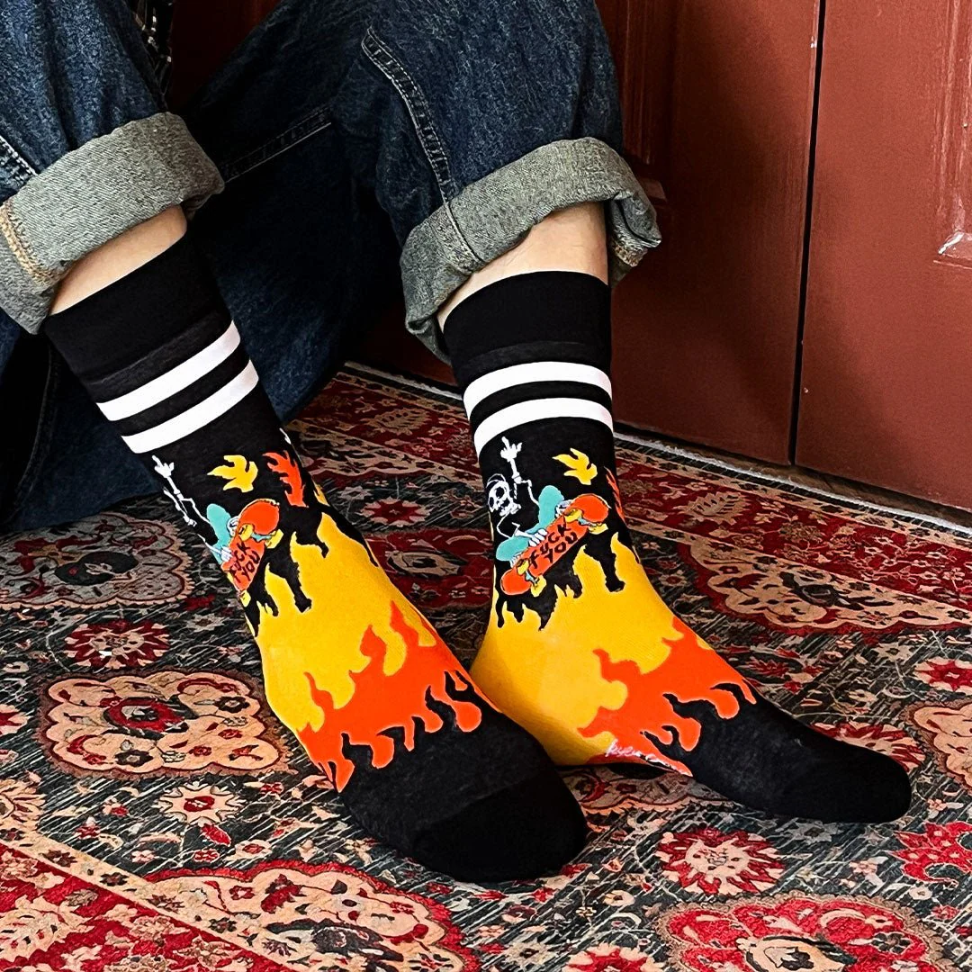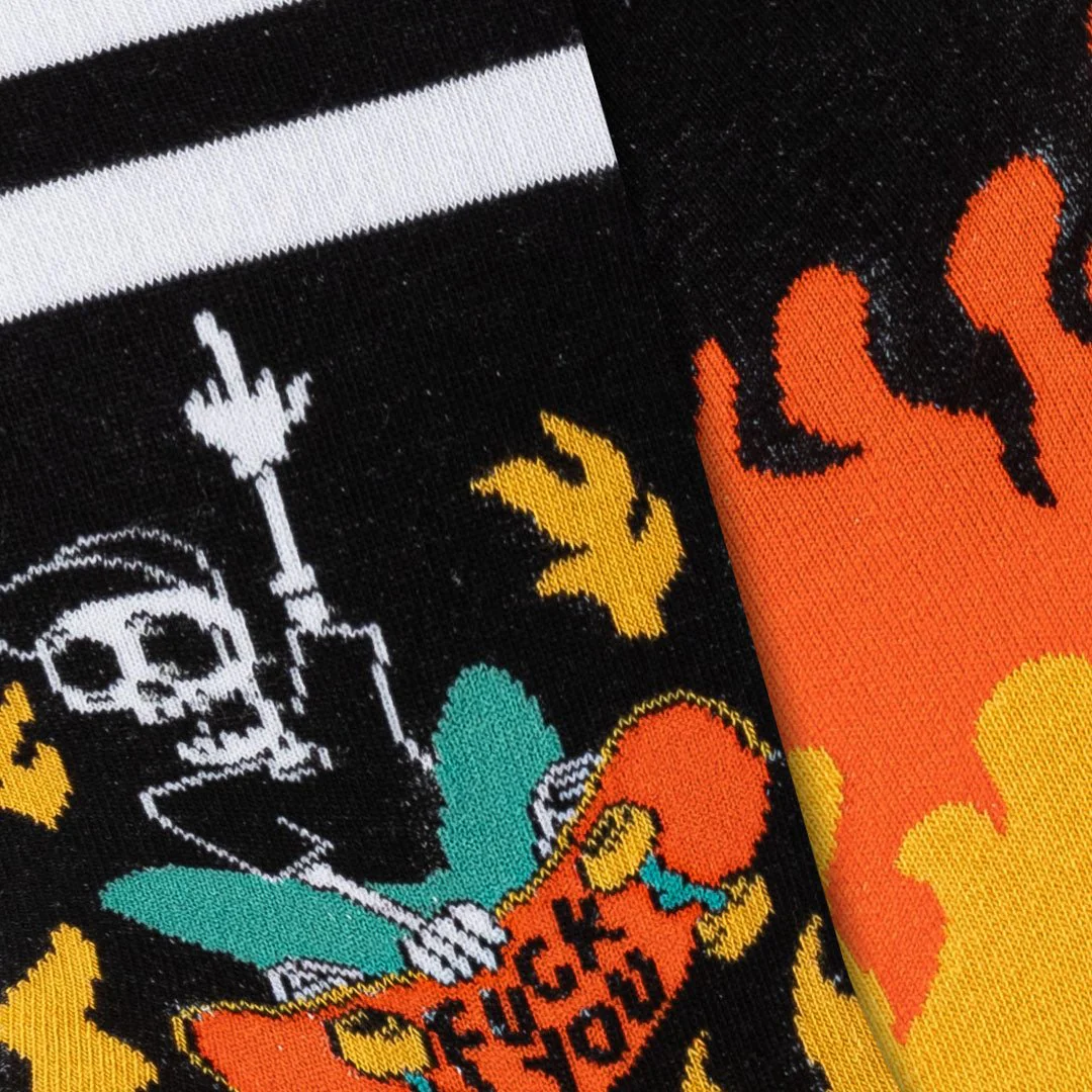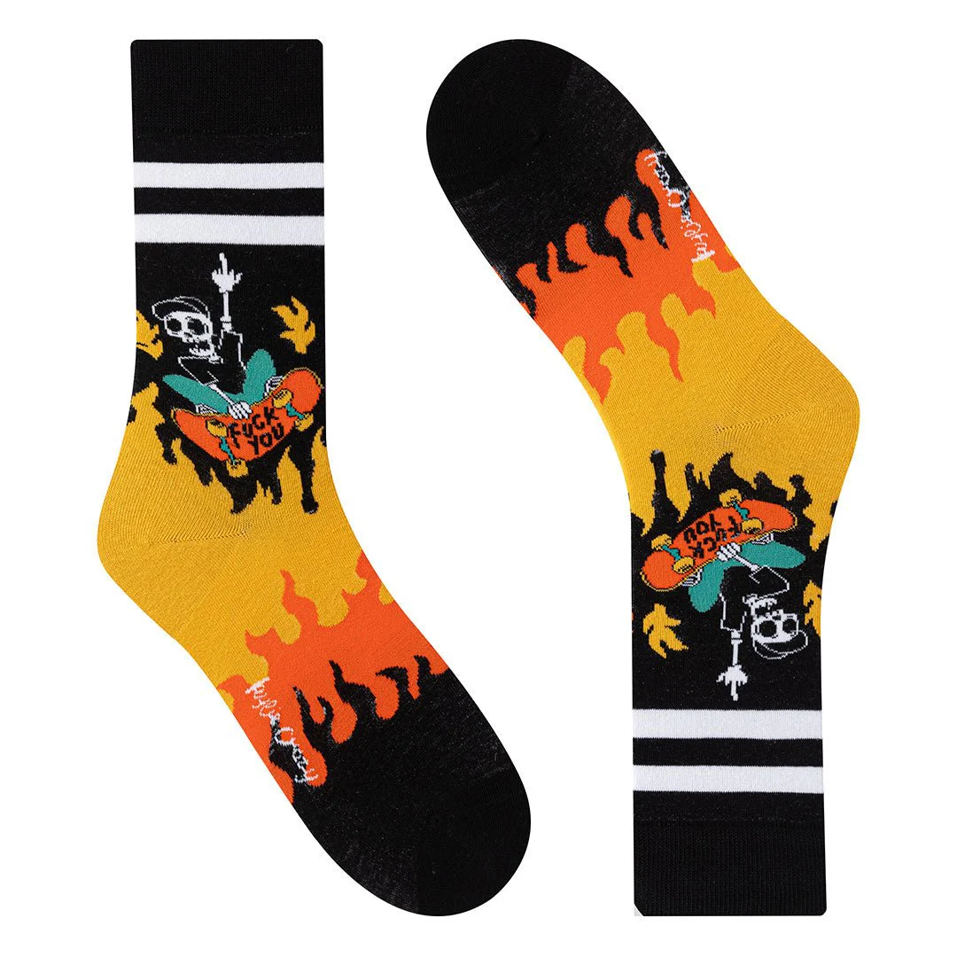 Calcetines divertidos de algodón «sin costuras». CALAVERA EN PATINETA