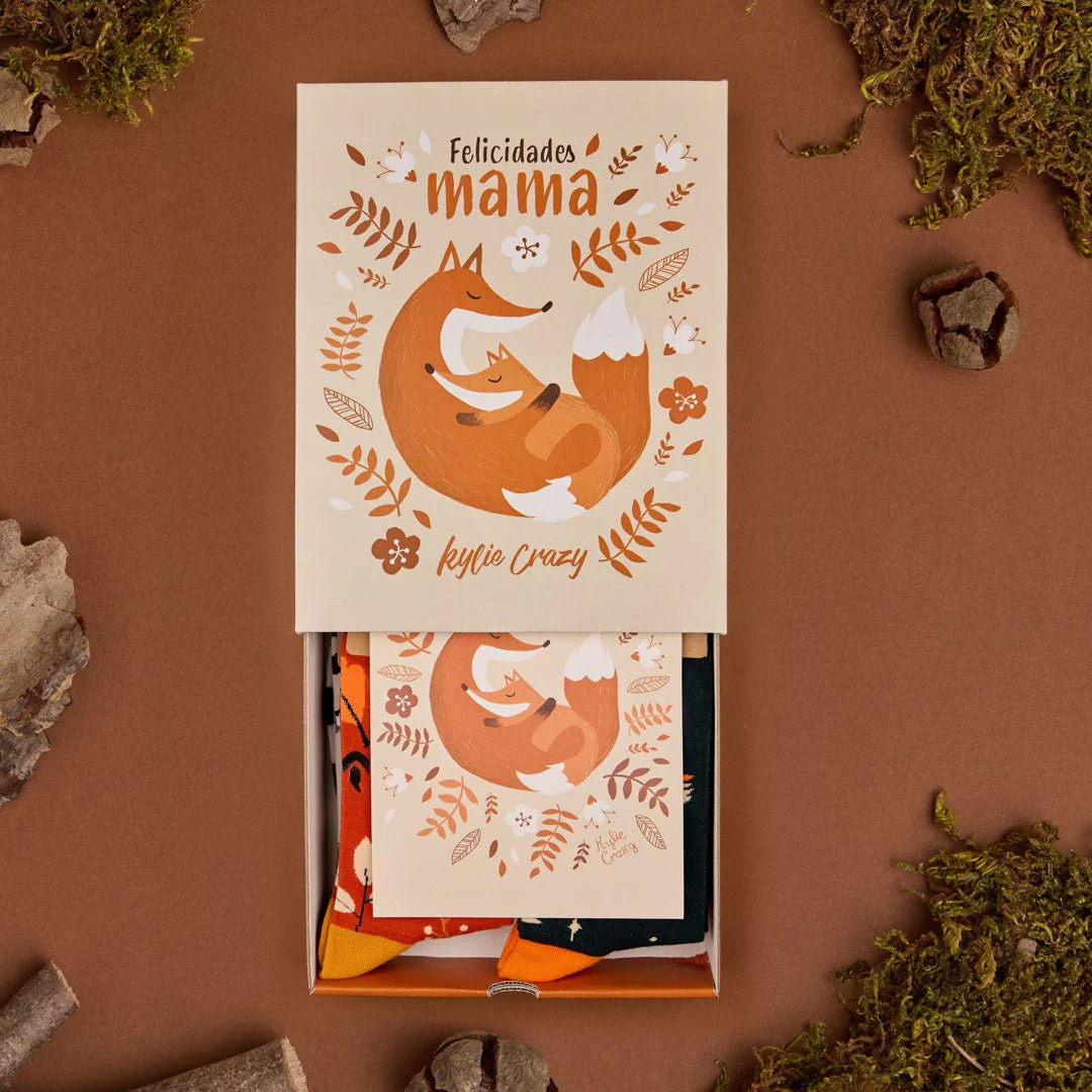 Pack regalo "Felicidades mamá" 4 pares calcetines + caja y printPack regalo «Felicidades mamá» 4 pares calcetines + caja y print