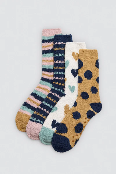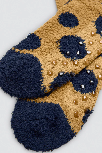 Pack individual de calcetines estampados antideslizantes y de franela para mujer. Modelo con puño antipresión y tacto extra suave