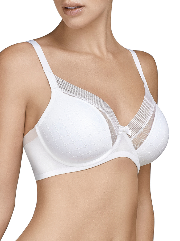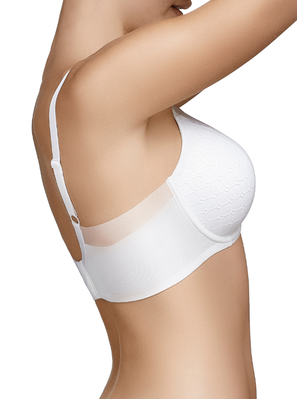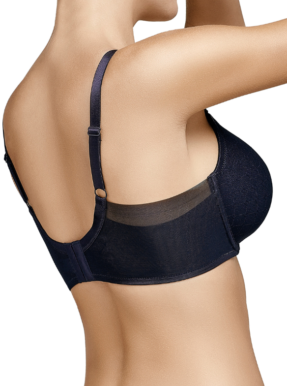 Novedoso y sofisticado sujetador juvenil con aros y sugerente copa de relleno escotada. Sus dos capas de tul superpuesto en la espalda proporcionan una adecuada sujeción al mismo tiempo que disimulan las irregularidades del costado.