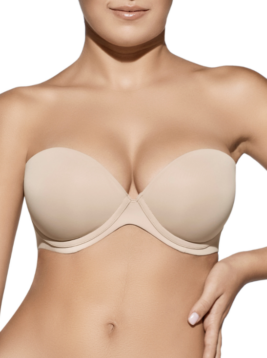 Sujetador básico sin tirantes. Lleva aros y copa de relleno push up.